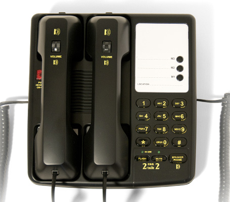 - Designed with twin handsets the 2 Can Talk ™ telephone ensures privacy during conference calls, in-house interpreting, or while using a language interpretation service. Each user has a separate handset for confidential communication.